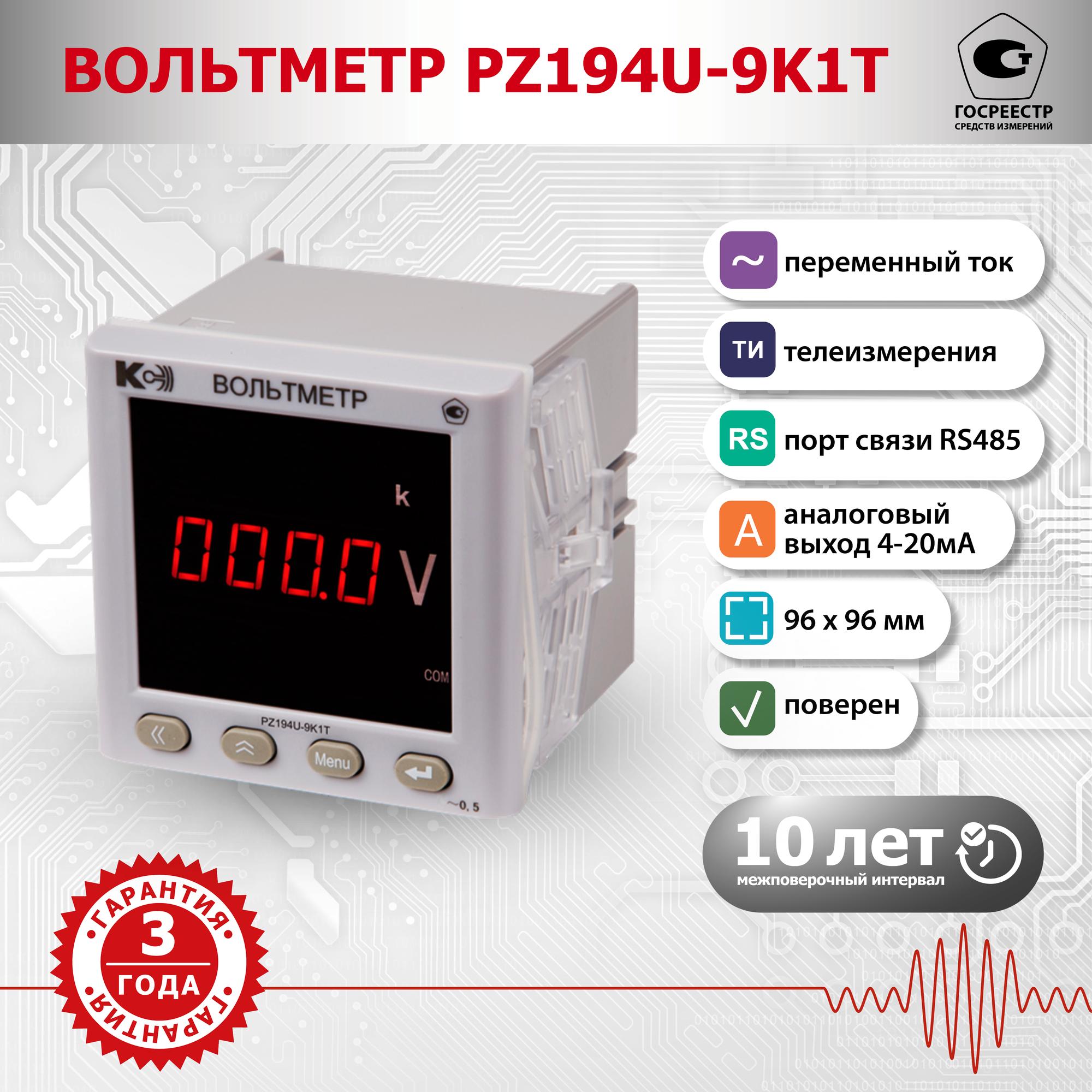 Вольтметр PZ194U-9K1T-00101-500В-4-20мА-К-0,5, код 44808012, производитель КС