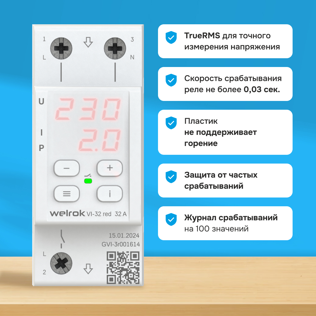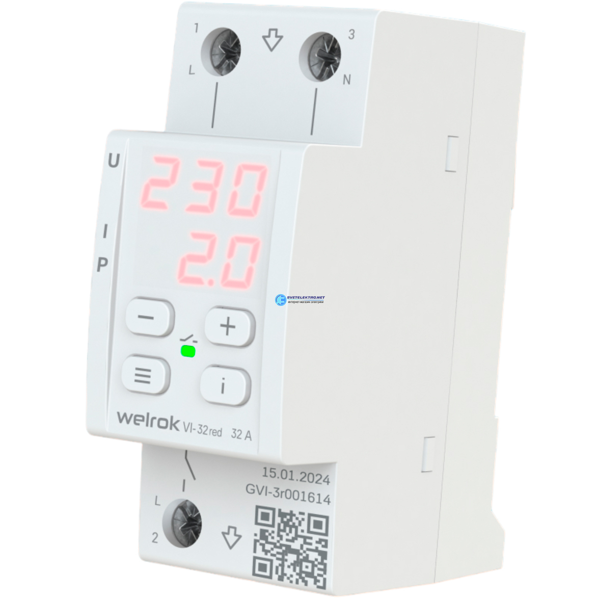 Реле напряжения c контролем тока VI-32 red, код 4660251140519, производитель Welrok