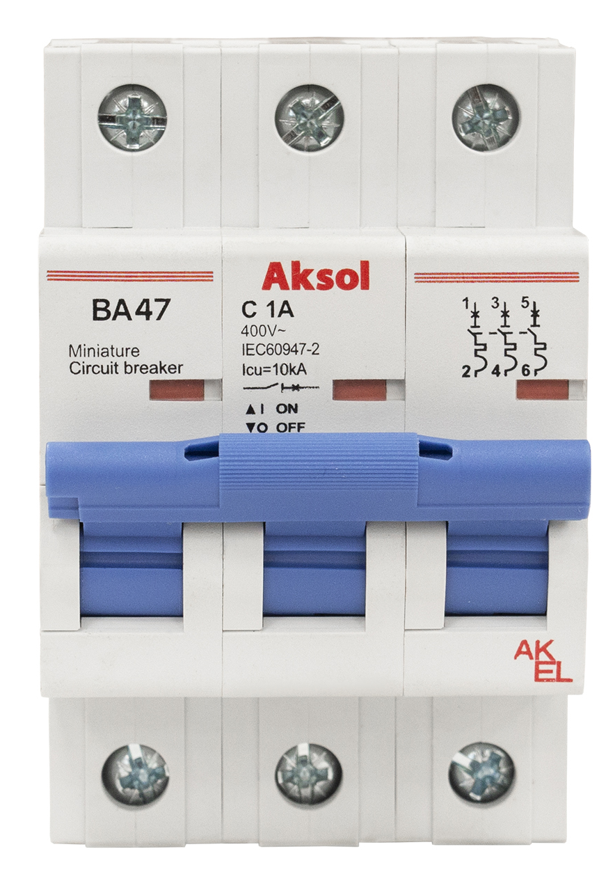 Выключатель автоматический ВА47-MCBH-AKSOL-3P-C6-AC 3P/6A/С/10кА, код 483306, производитель АКЭЛ