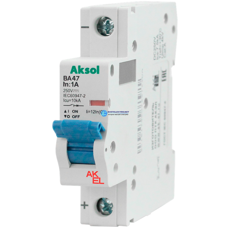 Выключатель автоматический ВА47-MCBH-AKSOL-1P-C2-DC 1P/2A/С/10кА, код 493102, производитель АКЭЛ
