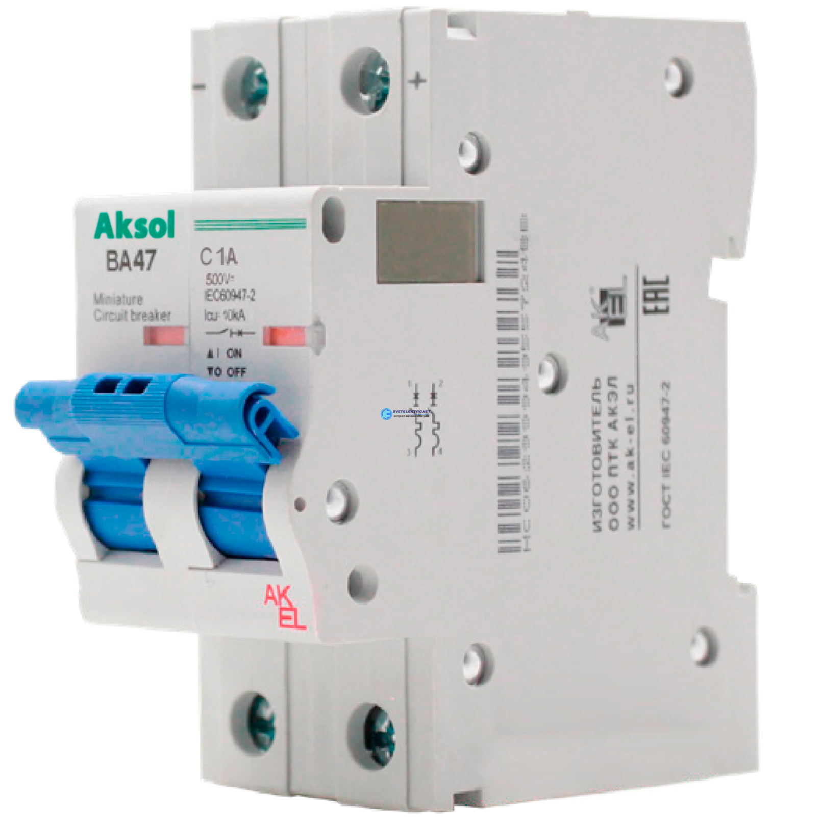 Выключатель автоматический ВА47-MCBH-AKSOL-2 PC 16-DC 2P/16A/С/500VDC/10кА, код 493216, производитель АКЭЛ