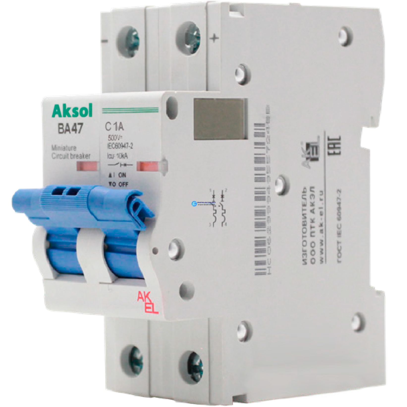 Выключатель автоматический ВА47-MCBH-AKSOL-2 PC 20-DC 2P/20A/С/500VDC/10кА, код 493220, производитель АКЭЛ