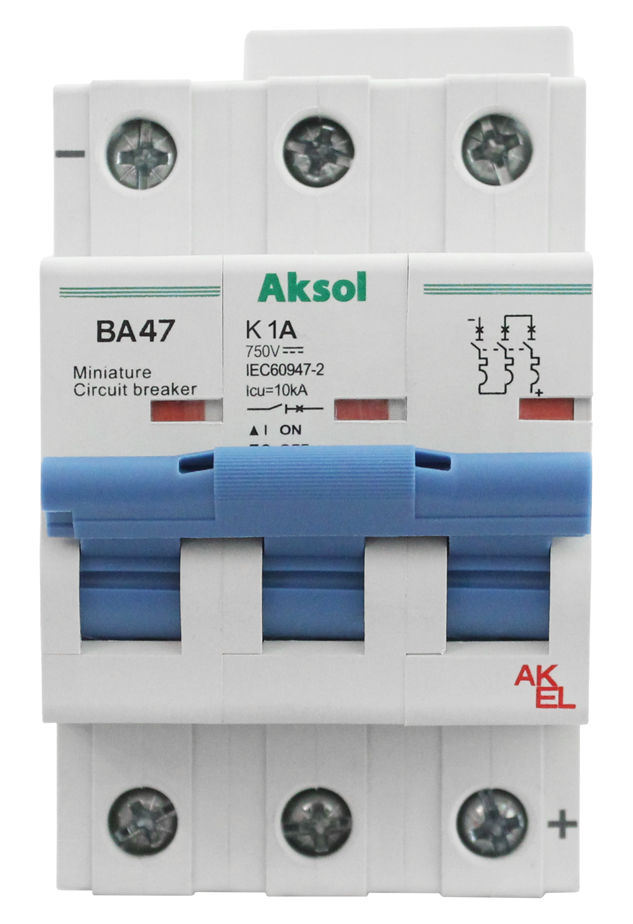 Выключатель автоматический ВА47-MCB-H-AKSOL-3P-K3-DC 3P/3A/K/10кА, код 495303, производитель АКЭЛ