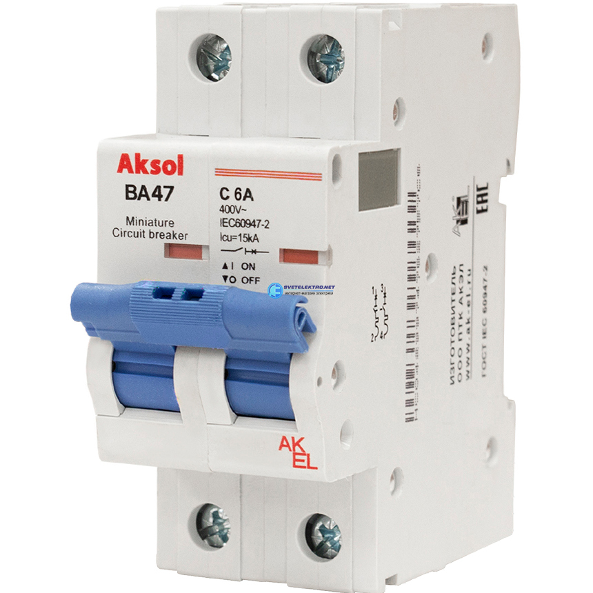Выключатель автоматический ВА47-MCBLAK SOL-2P-C16-AC 2P/16A/C/15кА, код 503216, производитель АКЭЛ