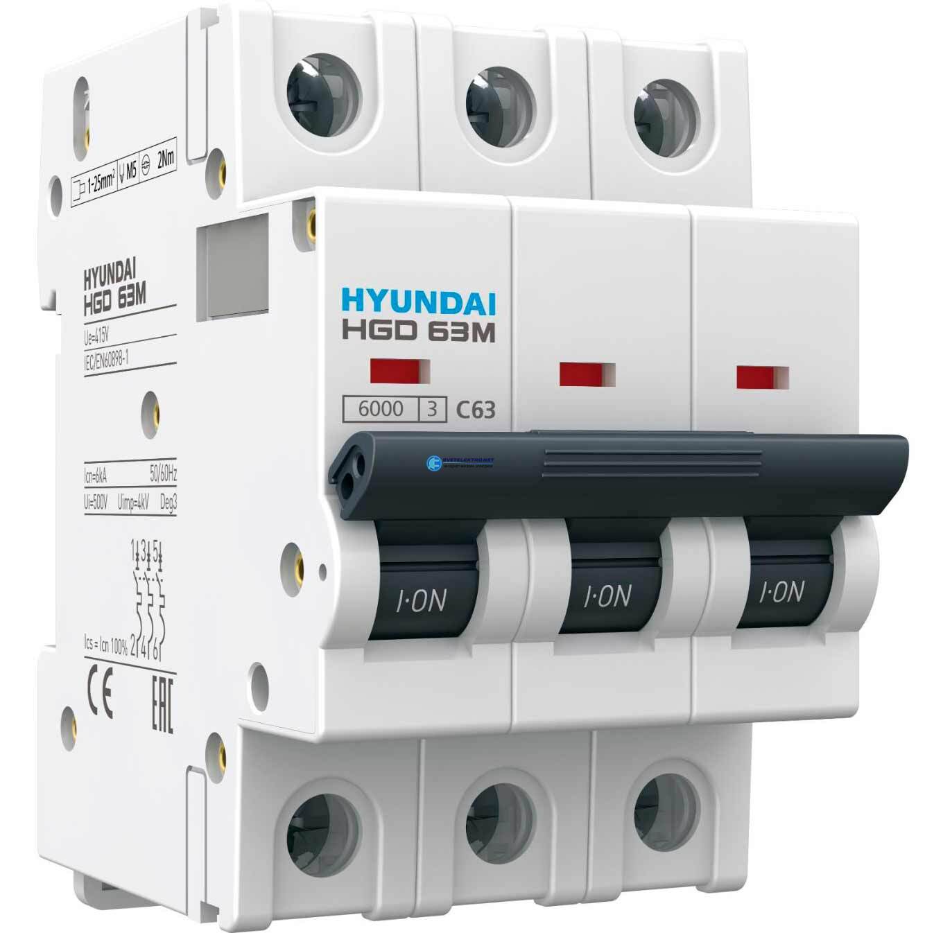 Выключатель автоматический модульный трехполюсный 40А 6кА С HGD, код 536987, производитель Hyundai