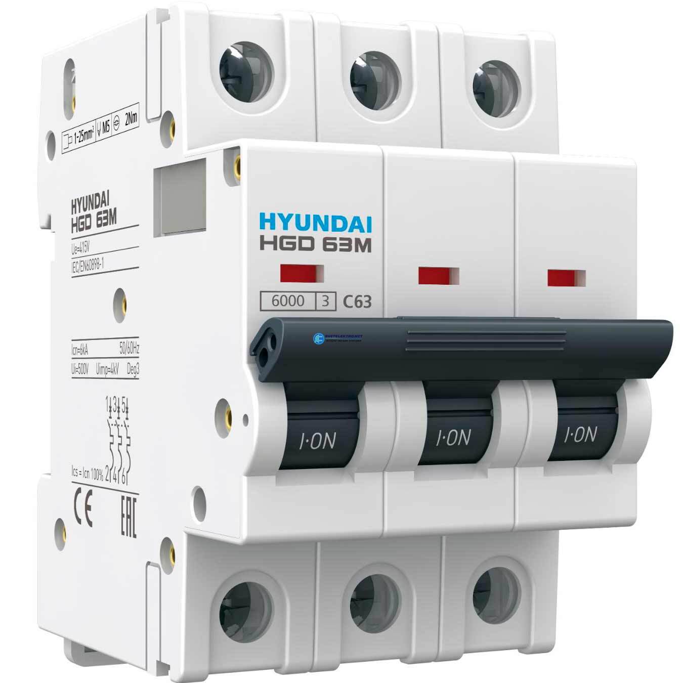 Выключатель автоматический модульный трехполюсный 63А 6кА С HGD, код 6612548, производитель Hyundai