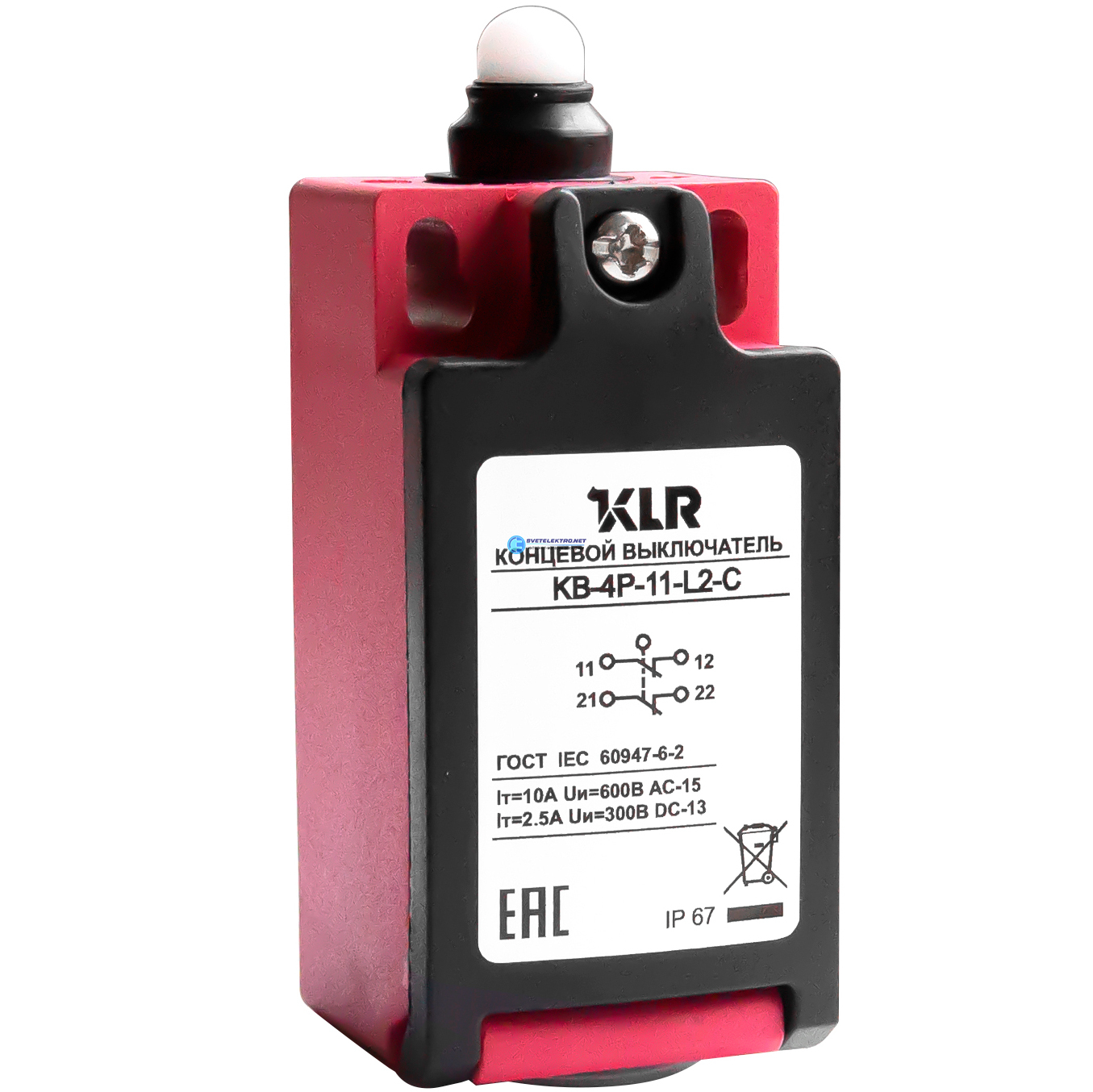 Выключатель концевой KB-4P-11-L2-C, толкатель пластиковый, 2Н.З. медленное срабатывание, пластиковый корпус, ввод M20, KLR, код 8800352, производитель АКЭЛ