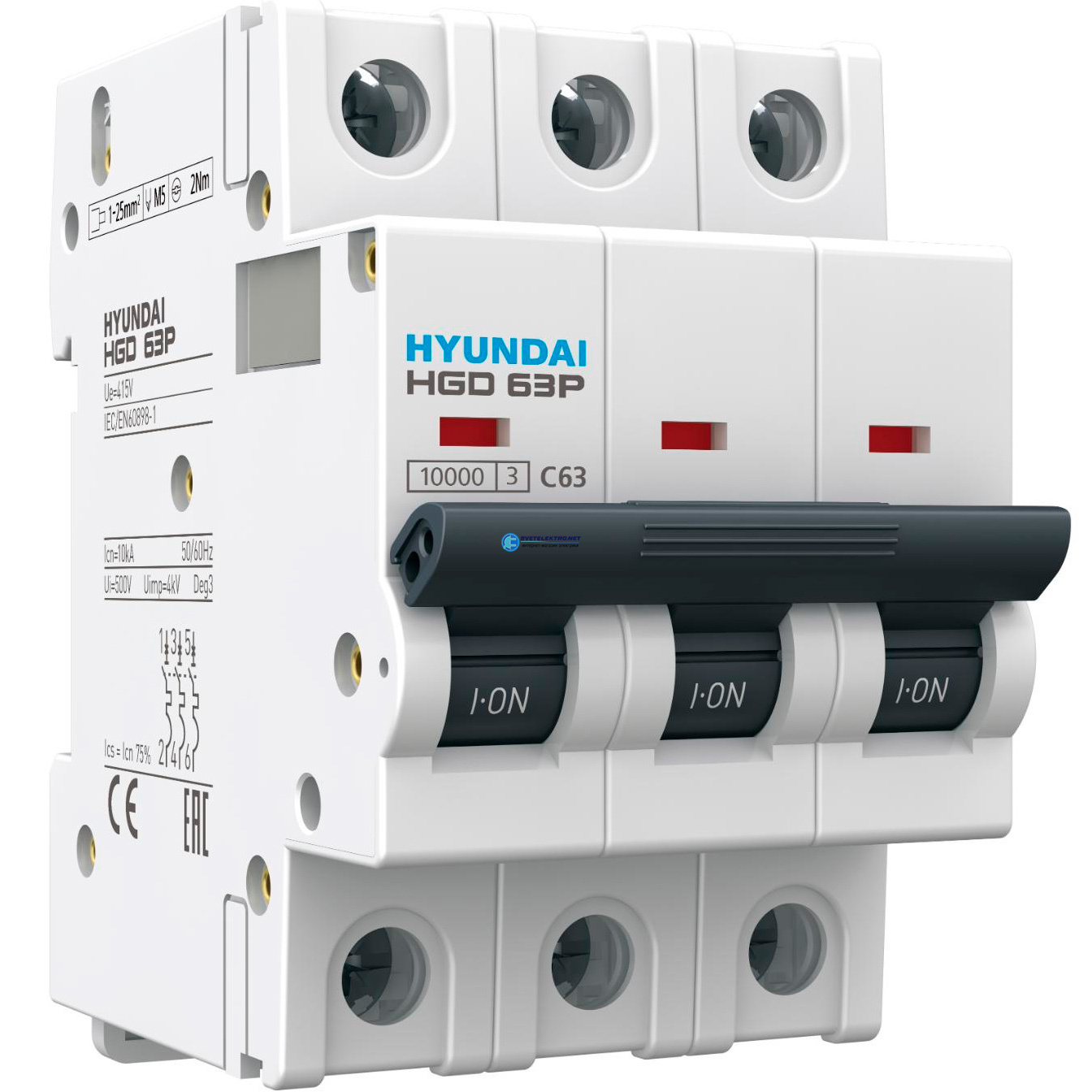 Выключатель автоматический модульный трехполюсный 40А 10кА С HGD, код 9098628, производитель Hyundai