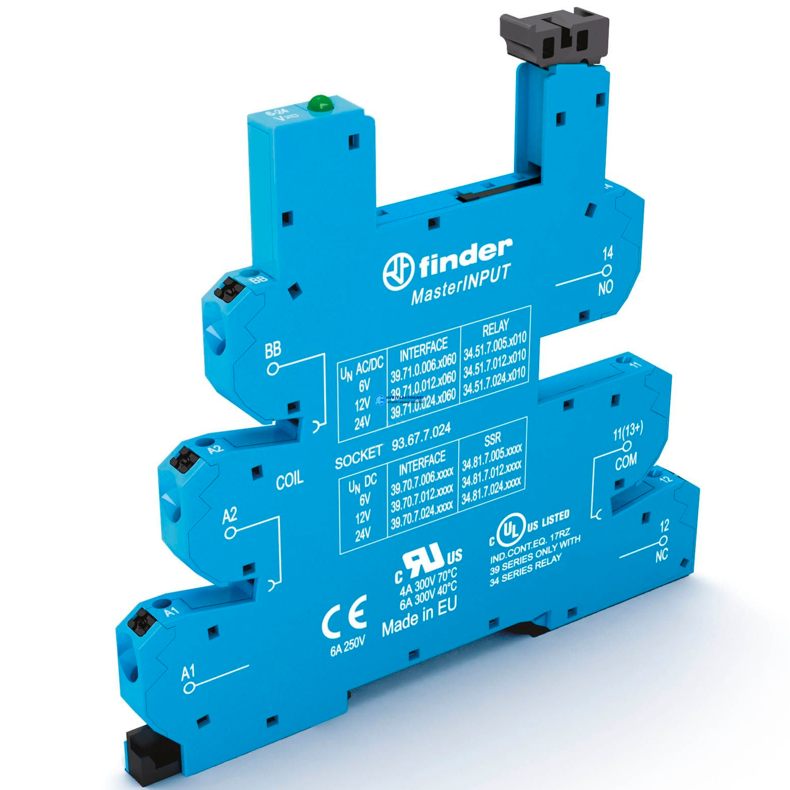 Розетка MasterINPUT с безвинтовыми клеммами Push-in для реле 34 серии, питание 24В DC, код 93.67.7.024, производитель FINDER