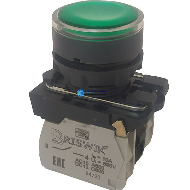 Выключатель КМЕ 4511м -Л 220В зеленый 1но+1нз Цилиндр IP54 с индикацией aB-EB-4Ai-7321 aB-EB-4Ai-7321 Briswik