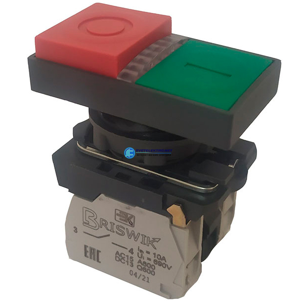 Выключатель кнопочный КМЕ 9111м -Л 220В зел-красн 1но+1нз Сдвоен выступ с Инд aB-GC-0Ai-7621 aB-GC-0Ai-7621 Briswik