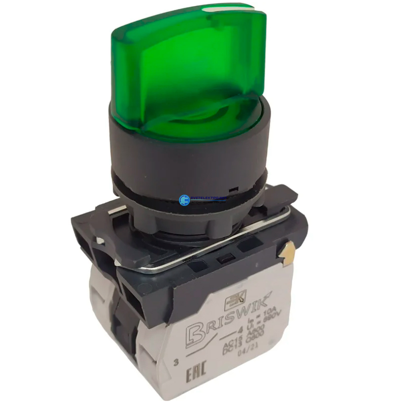 Переключатель КПЕ 1111 -РЛ 24В зеленый 1но+1нз Ручка с фикс 2-поз с Инд, код aB-XB-0Ai-3321, производитель Briswik