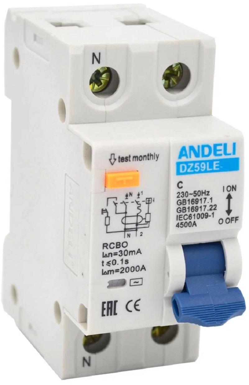 Выключатель автоматический дифференциальный АВДТ 1P+N 25A 30mA С 4.5кА DZ59le-40 ADL02-054 ANDELI
