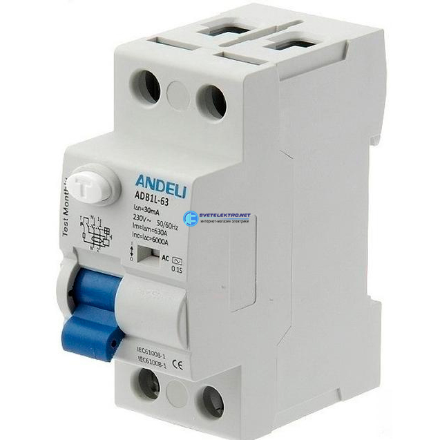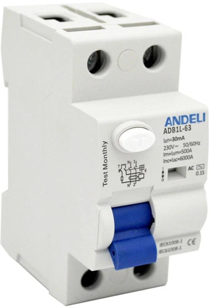 Выключатель дифференциального тока (УЗО) 2P 32A 30mA AC 6кА ADB1L-63, код ADL03-019, производитель ANDELI