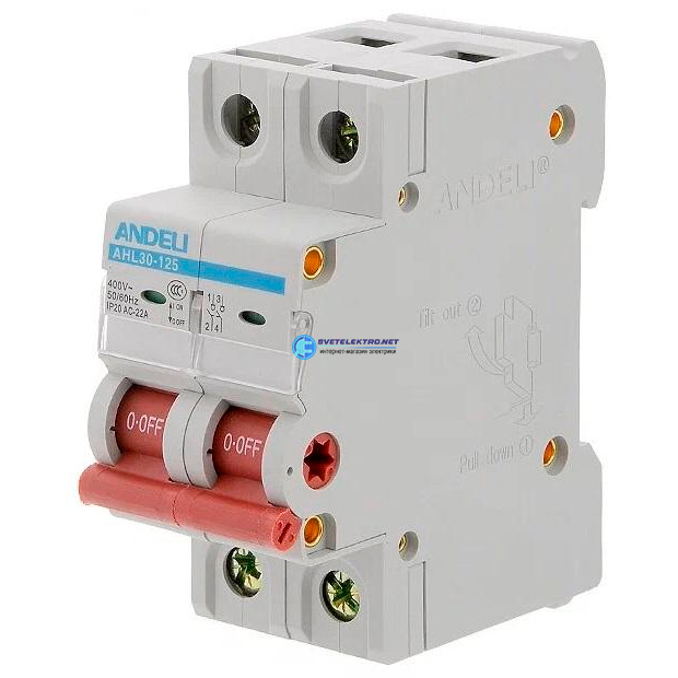 Выключатель нагрузки AHL30-125 2P 63A, код ADL04-041B, производитель ANDELI