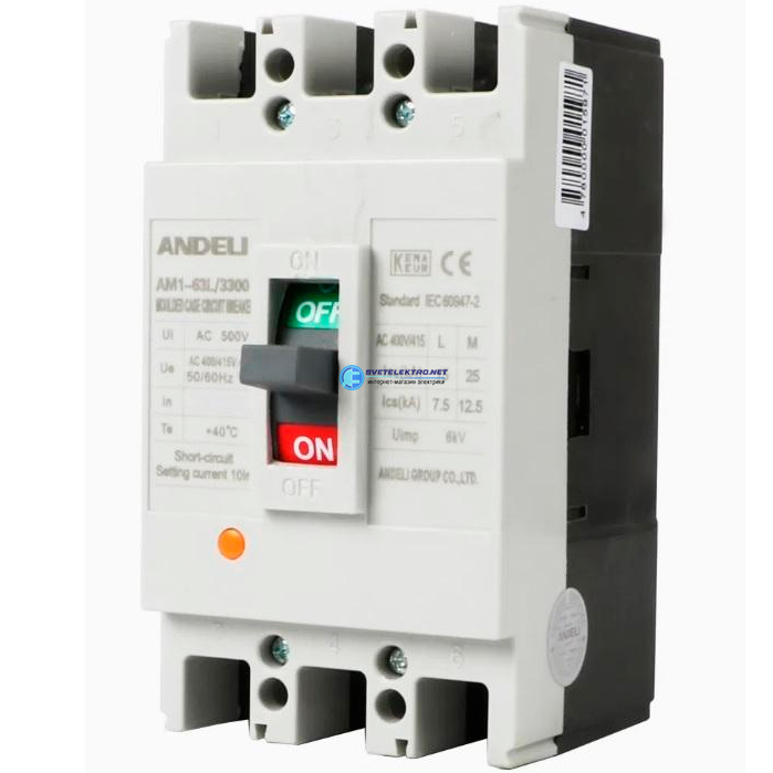 Выключаталь автоматический AM1-63L 3P 40A 25KA, код ADL06-006, производитель ANDELI