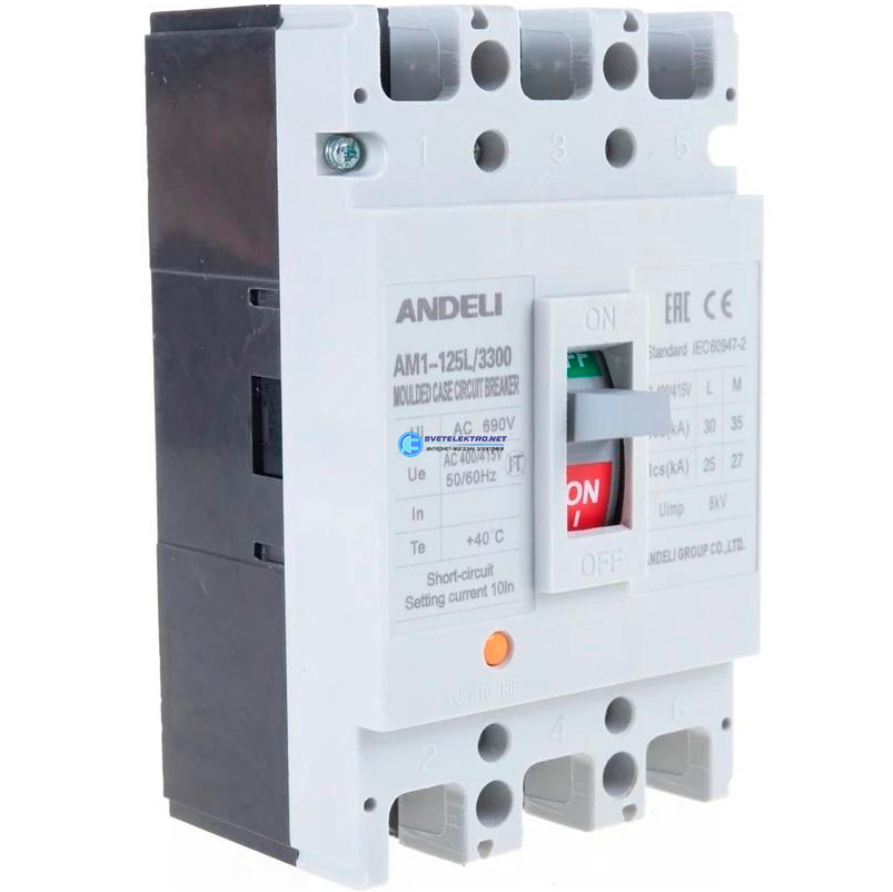 Выключатель автоматический am1-125l/3p 100a 30ka, код ADL06-025, производитель ANDELI