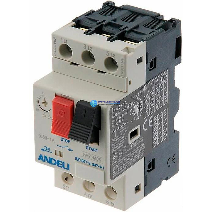 Пускатель gv2-m05 0.63а~1а ue 660в, код ADL06-604, производитель ANDELI