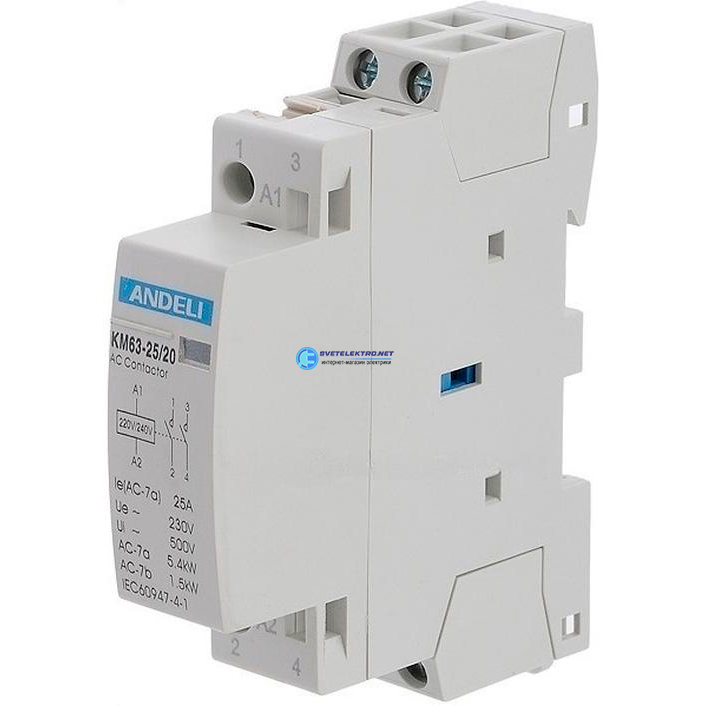 Контактор модульный КМ63-25/20 2No 2P 25A КМ63-25/20, код ADL08-233, производитель ANDELI