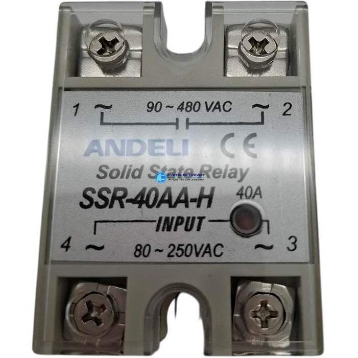 реле твердотельное SSR-40AA-H 40A Управляющее напряжение 80-250V AC 90-480V AC, код ADL09-255, производитель ANDELI