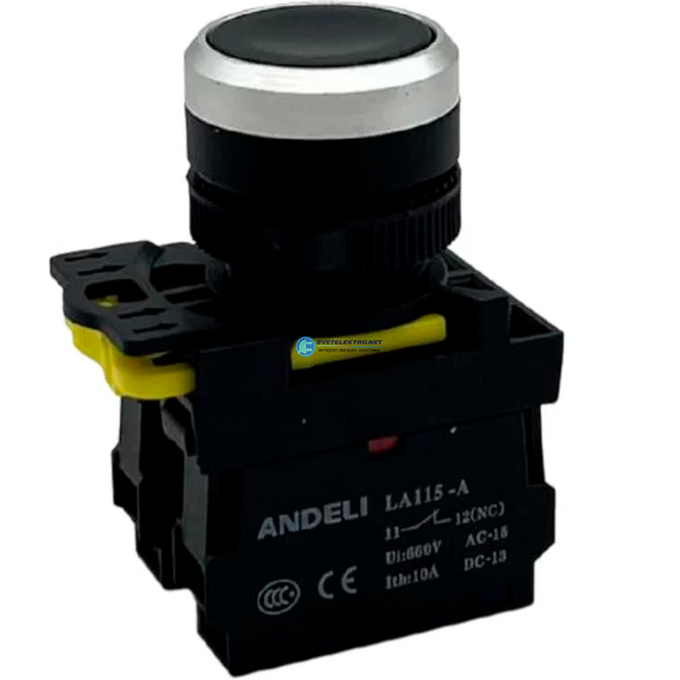 Кнопка LA115-A5-10BN/2 черная 1НО возвратная IP65 AC15 4,5А DC13 0,6А Ith 10A, код ADL10-308, производитель ANDELI