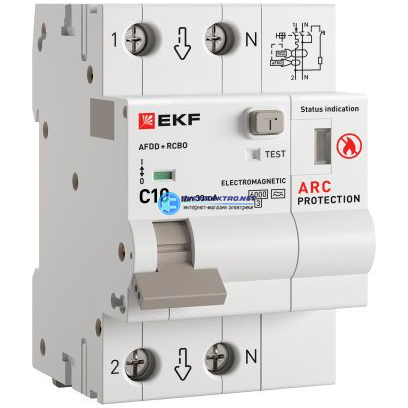 Устройство защиты от дугового пробоя с автоматическим выключателем дифференциального тока (УЗДП + АВДТ) 1P+N 10А 30мА характеристика С тип А 6 кА PROX, код afdd-rcbo-2-10C-30em-pro, производитель EKF