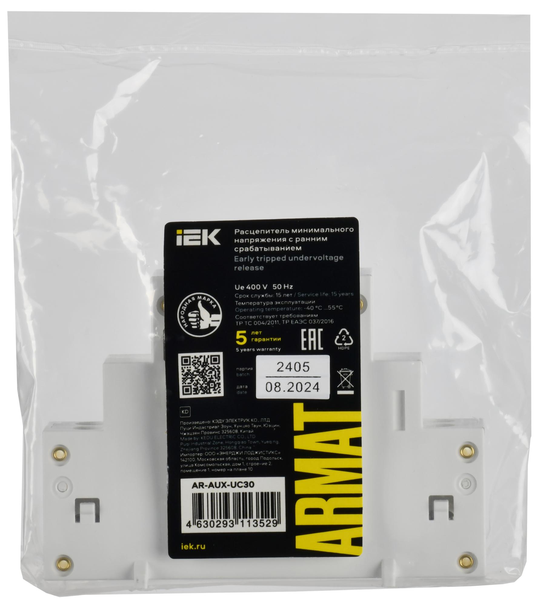 ARMAT Расцепитель минимального напряжения с ранним срабатыванием 380/400В GV2P, код AR-AUX-UC30, производитель IEK