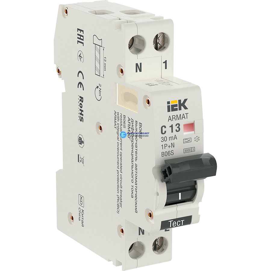 RMT Выключатель автоматический дифференциальный АВДТ 1п+NP 30мА тип (18мм), код AR-B06S-1N-C13A030, производитель IEK