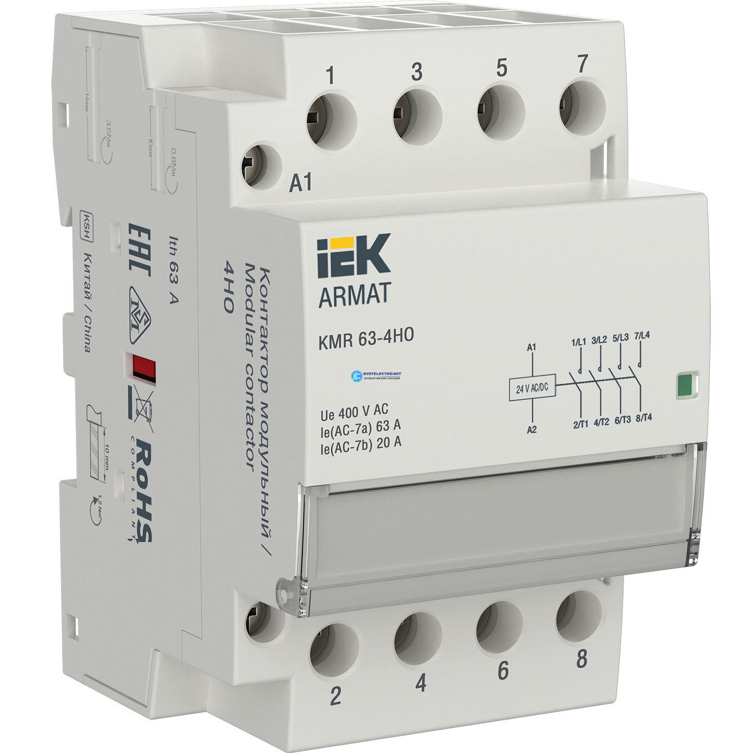 ARMAT Контактор модульный 63А 24В AC/DC 4НО, код AR-KMR20-063-40-024, производитель IEK