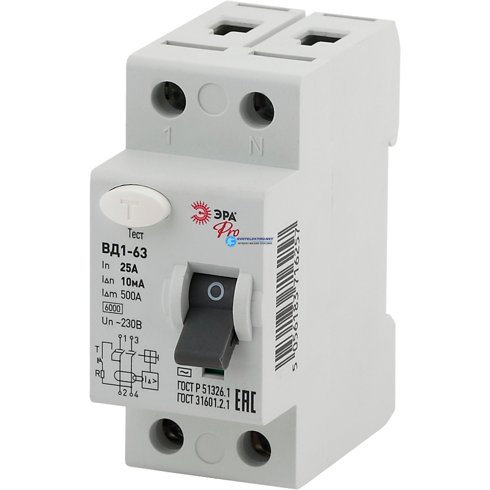 УЗО PRO NO-902-48 ВД1-63 2P 25А 10мА, код Б0031889, производитель ЭРА