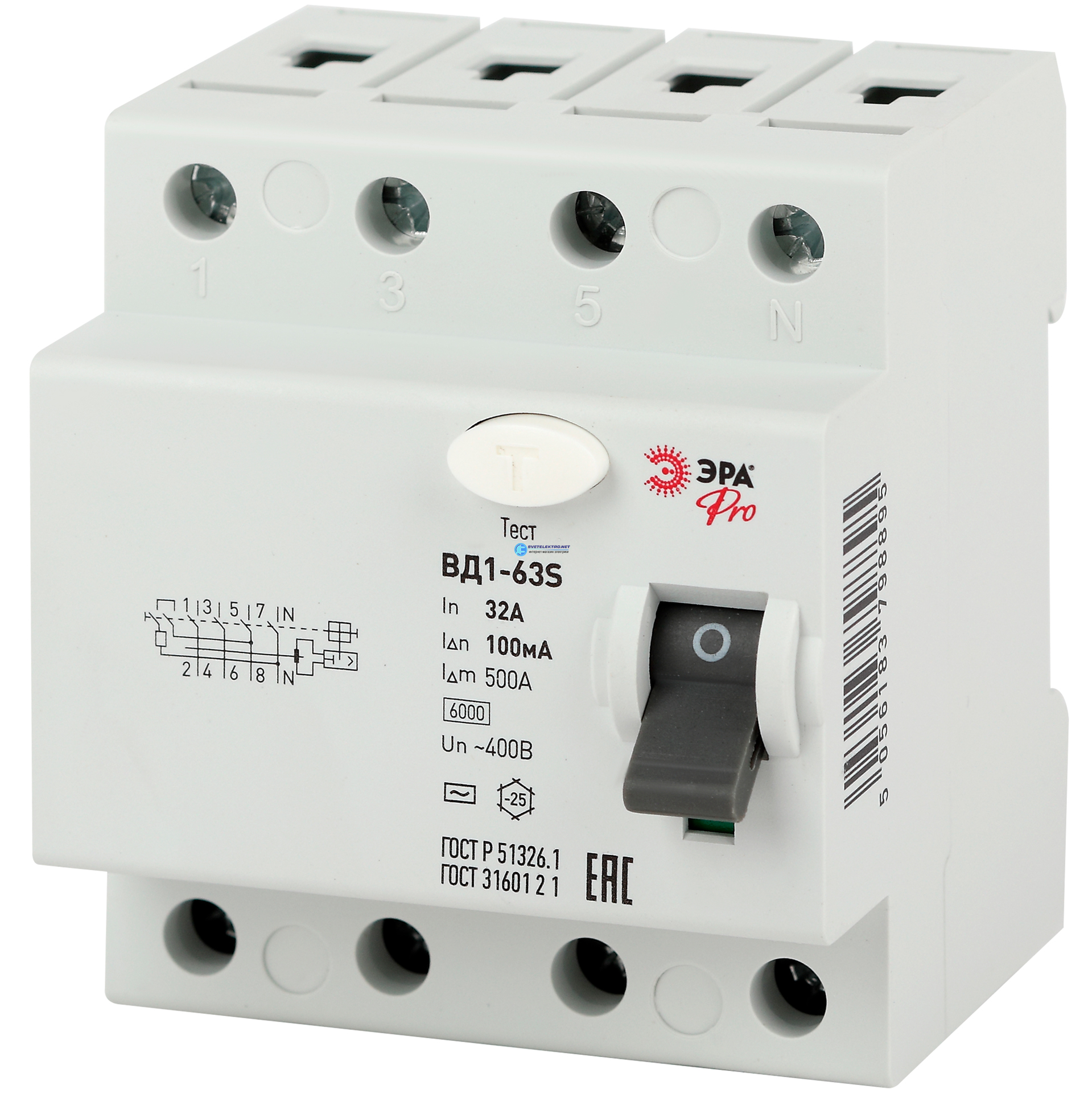 УЗО PRO NO-902-154 ВД1-63S 3P+N 32А 100мА, код Б0036859, производитель ЭРА