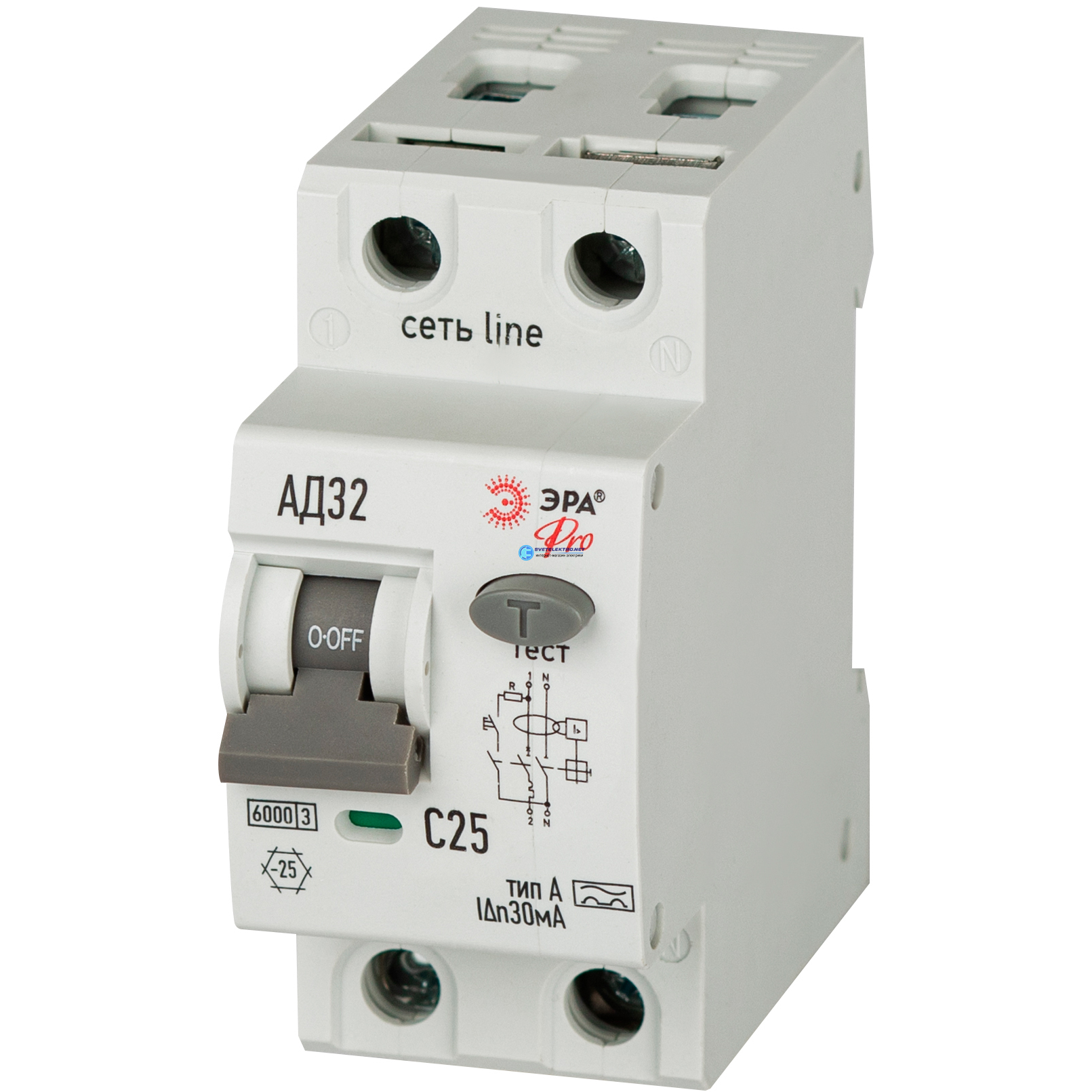 ВДТ электромехническое 6к D326M2C2530 Д-32 1P+N C25 30м тип PRO, код Б0059076, производитель ЭРА