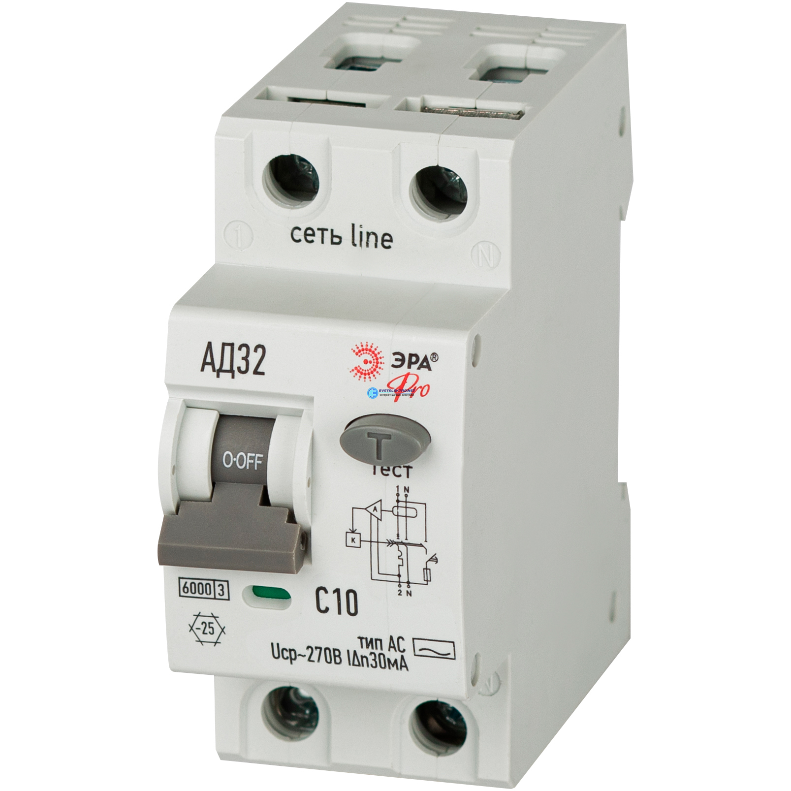 АВДТ электронное 6кА D326E2C10АC30P АД-32 1P+N C10 30мА тип АC защита 270В PRO, код Б0059110, производитель ЭРА