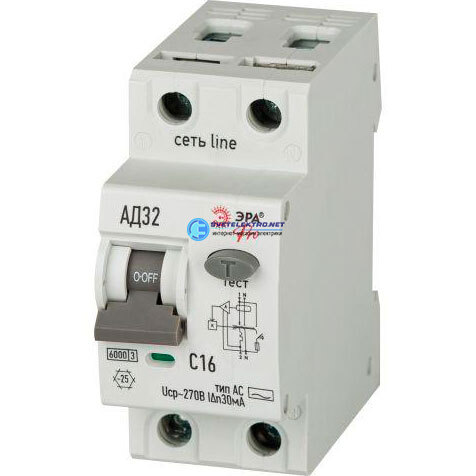 АВДТ электронное 6кА D326E2C16АC30P АД-32 1P+N C16 30мА тип АC защита 270В ЭРА PRO Б0059111 ЭРА