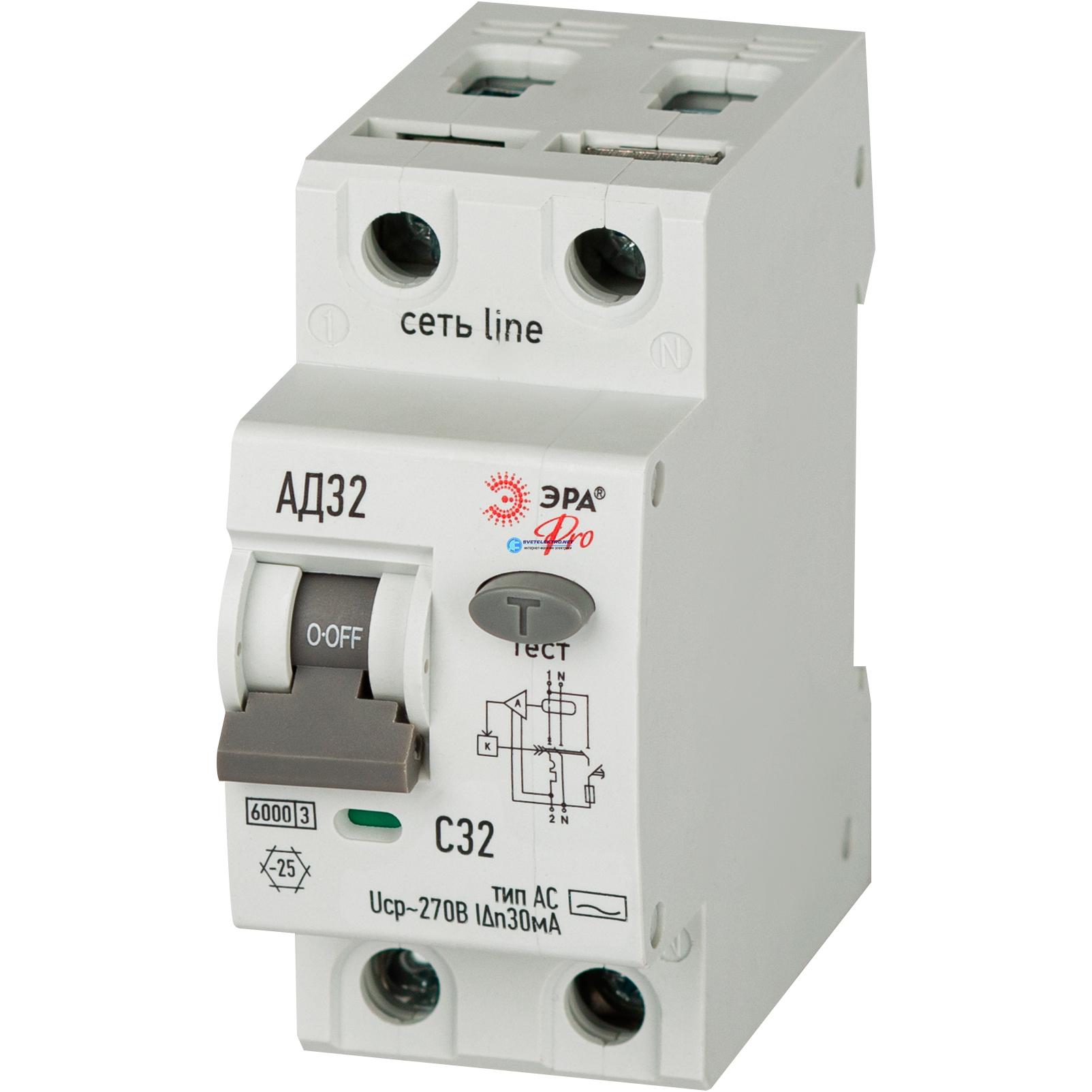 АВДТ электронное 6кА D326E2C32АC30P АД-32 1P+N C32 30мА тип АC защита 270В PRO, код Б0059114, производитель ЭРА