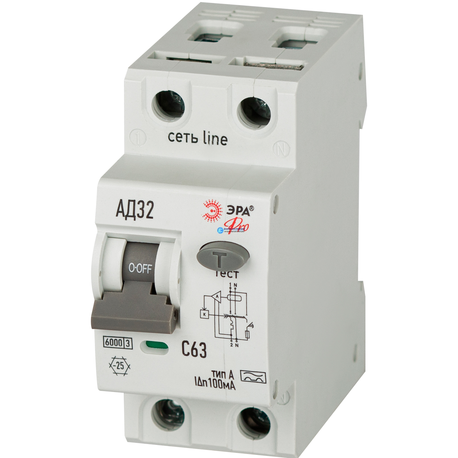 АВДТ электронное 6кА D326E2C63A100 АД-32 1P+N C63 100мА тип A PRO, код Б0059206, производитель ЭРА