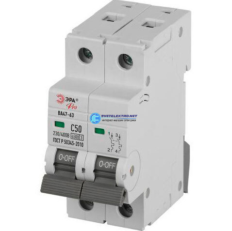 Выключатель автоматический ВА47-63 2P 50А кривая C 4,5кА PRO VA63-2P50C4.5 Б0059427 ЭРА