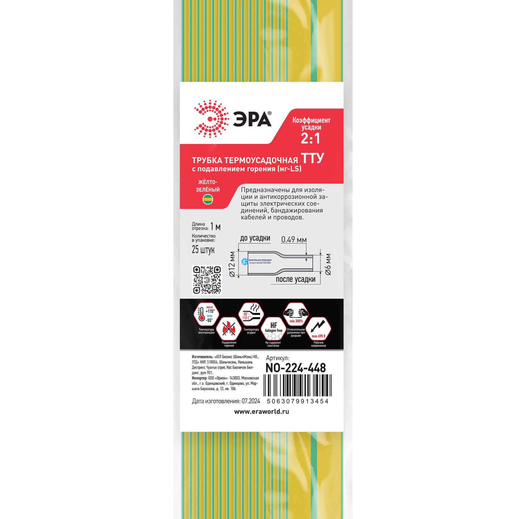 Трубка термоусадочная ТТУ нг-LS 12/6 жёлто-зелёная в отрезках по 1 м NO-224-448, код Б0067685, производитель ЭРА