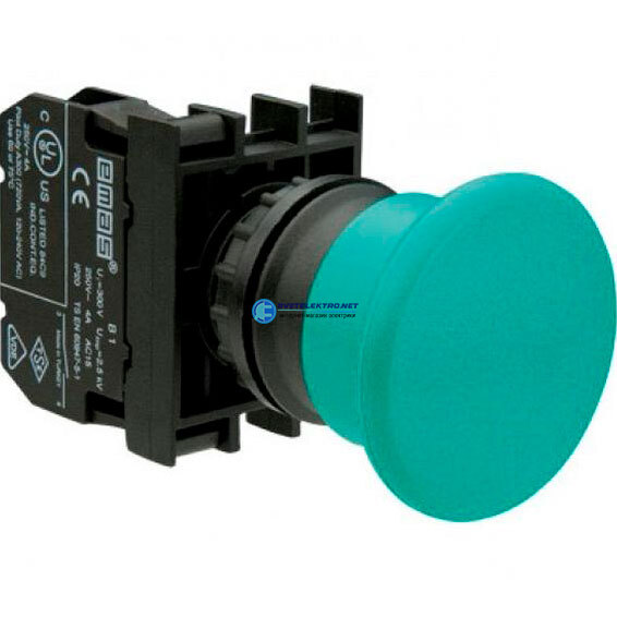 "Кнопка ""Грибок"" 40мм (1НО), без фиксации, зелёный цвет, серия (250В AC, 4А), IP50", код B100MY, производитель EMAS