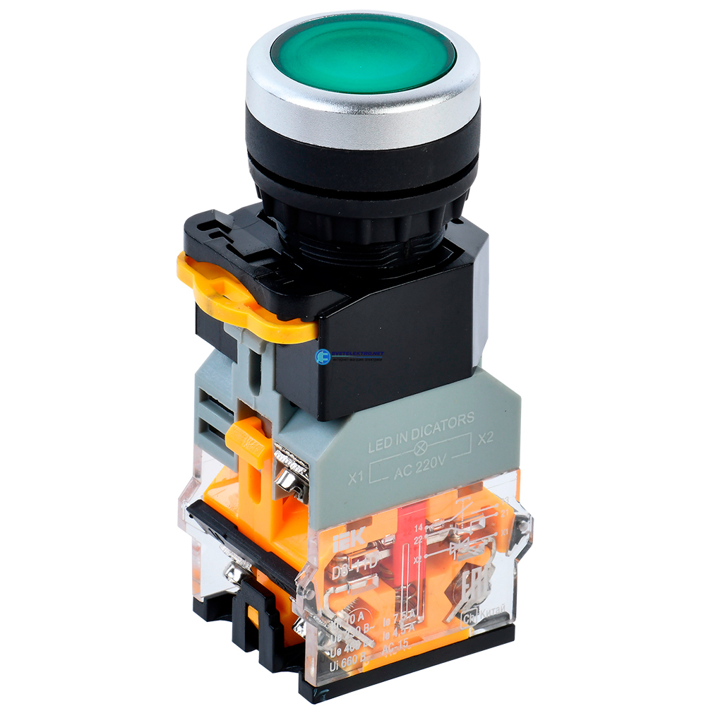 Кнопка D8-11D d=22мм 1з+1р с подсветкой зеленая, код BBT30-11D-3-12-K06, производитель IEK