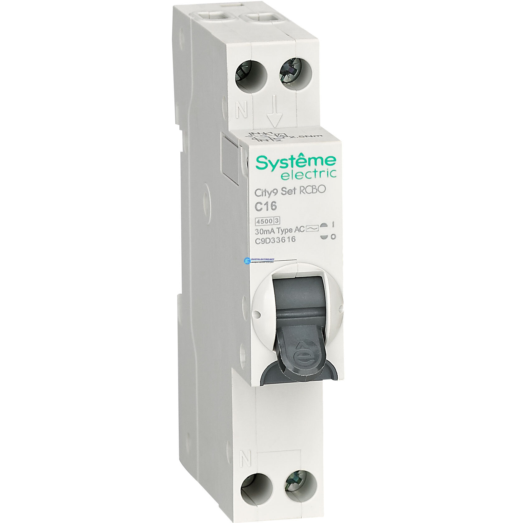 Выключатель автоматический дифференциального тока АВДТ 1П+Н C16 4500A 30мА AC 18мм City9 Set C9D33616 Systeme Electric