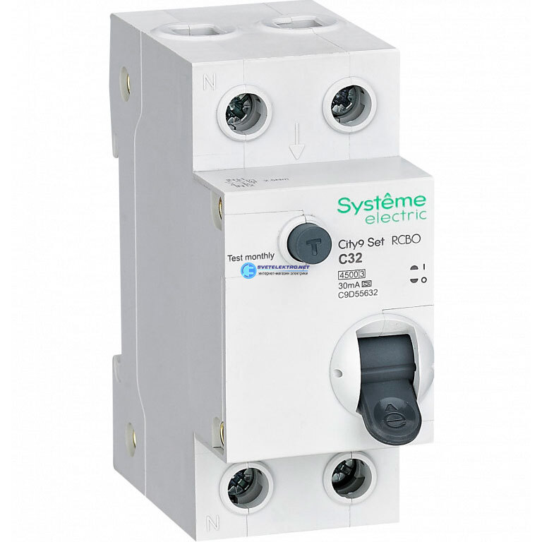 Выключатель автоматический дифференциального тока (АВДТ) 1P+N С 32А 4.5kA 30мА Тип-A 230В City9 Set, код C9D55632, производитель Systeme Electric