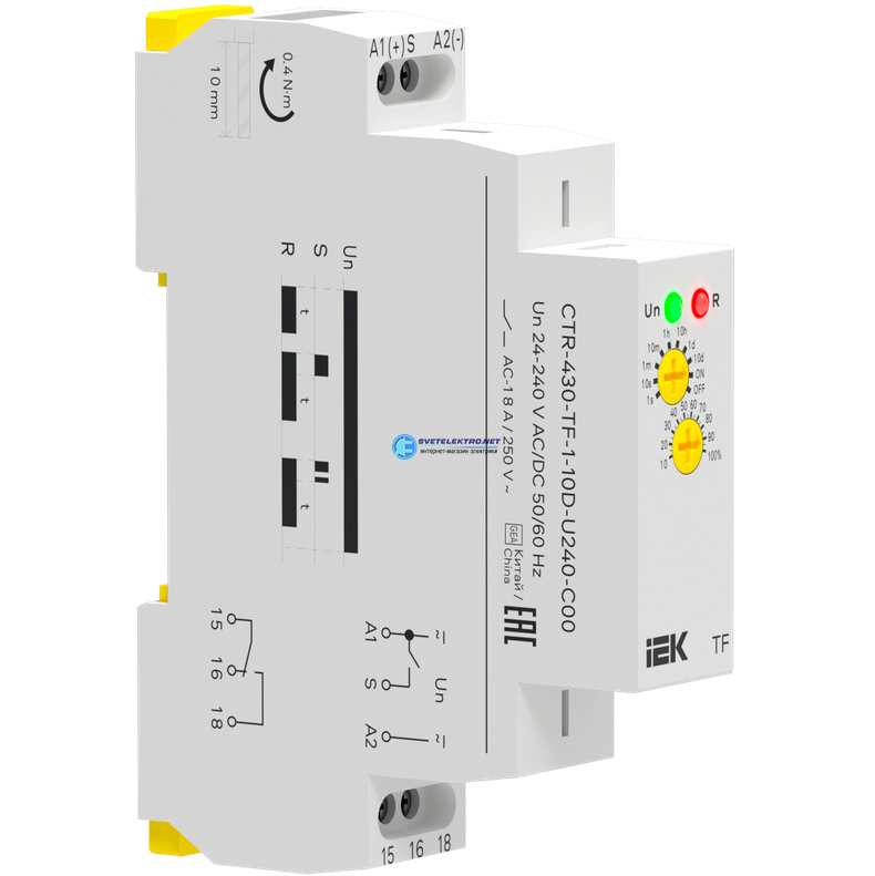 Реле задержки выключения контакт 24-240В AC/DC IEK, код CTR-430-TF-1-10D-U240-C00, производитель ONI
