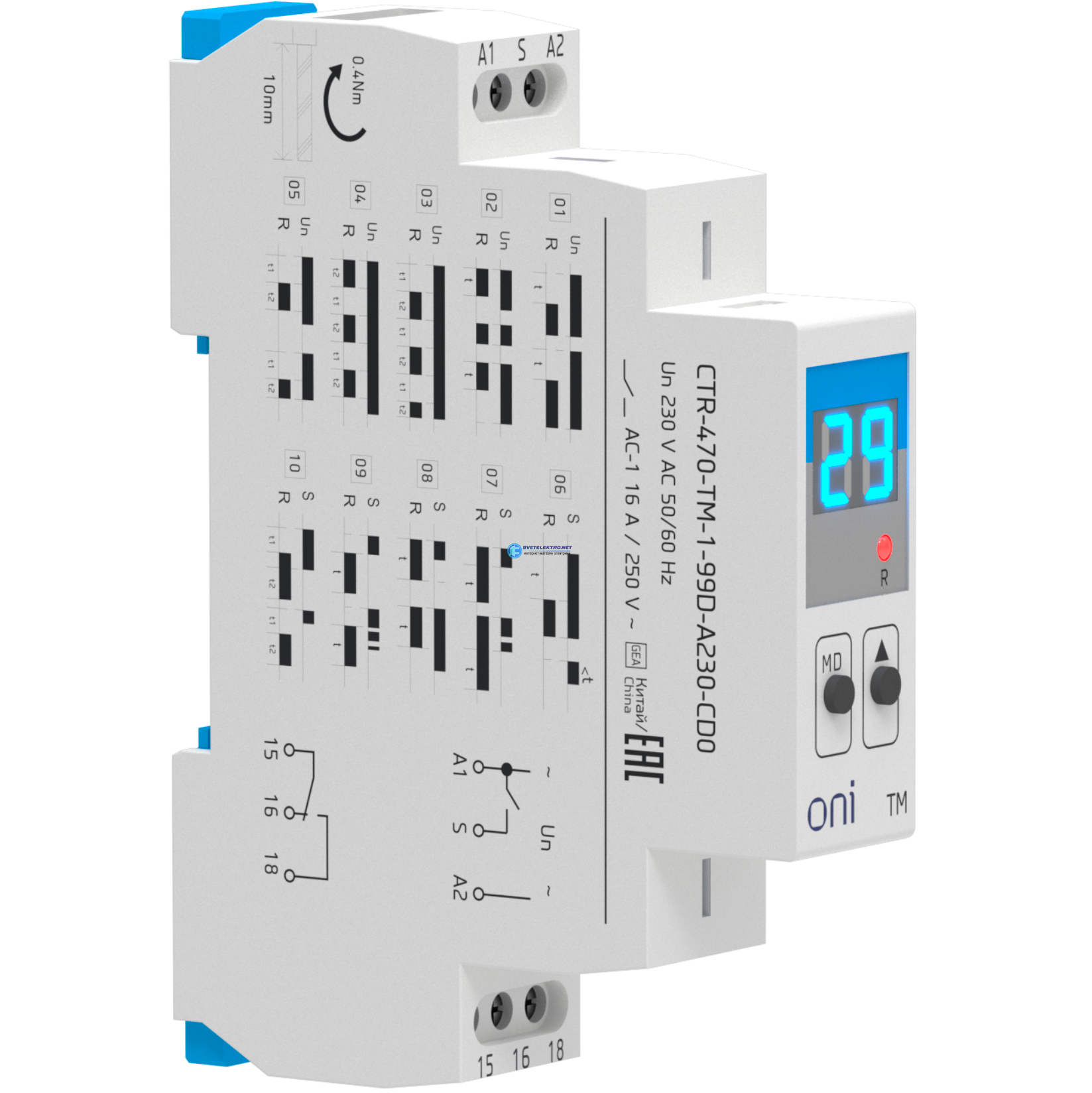 Реле времени многофункциональное TM с дисплеем 1 контакт 230В AC ONI CTR-470-TM-1-99D-A230-CD0 ONI