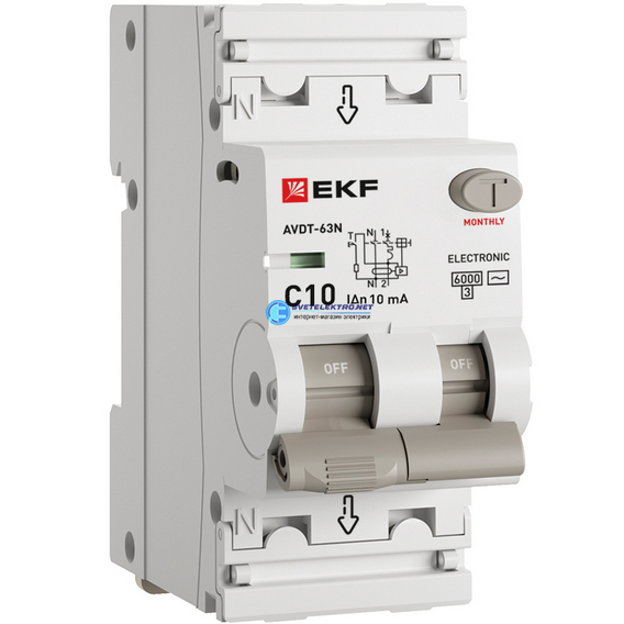 Выключатель автоматический дифференциальный АВДТ-63N 1P+N 10А 10мА эл 6кА PROXIMA, код D63N26E10C10, производитель EKF