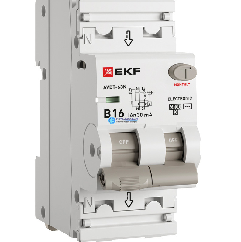 Выключатель автоматический дифференциальный АВДТ-63N 1P+N 16А 30мА (AC) эл 6кА PROXIMA, код D63N26E16B30, производитель EKF