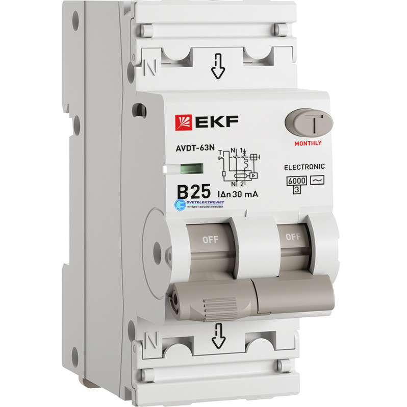 Выключатель автоматический дифференциальный АВДТ-63N 1P+N 25А 30мА (AC) эл 6кА PROXIMA, код D63N26E25B30, производитель EKF