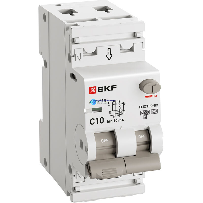 Выключатель автоматический дифференциальный АВДТ-63N 1P+N 10А 10мА эл 6кА, код D63N26EA10C10, производитель EKF