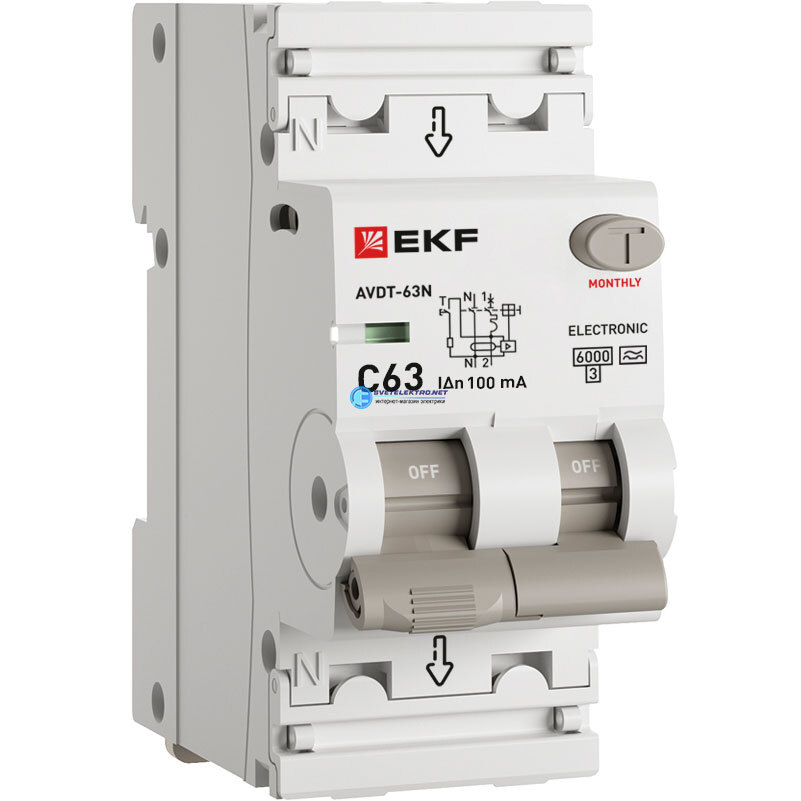 Выключатель автоматический дифференциальный АВДТ-63N 1P+N 63А 100мА эл 6кА, код D63N26EA63C100, производитель EKF