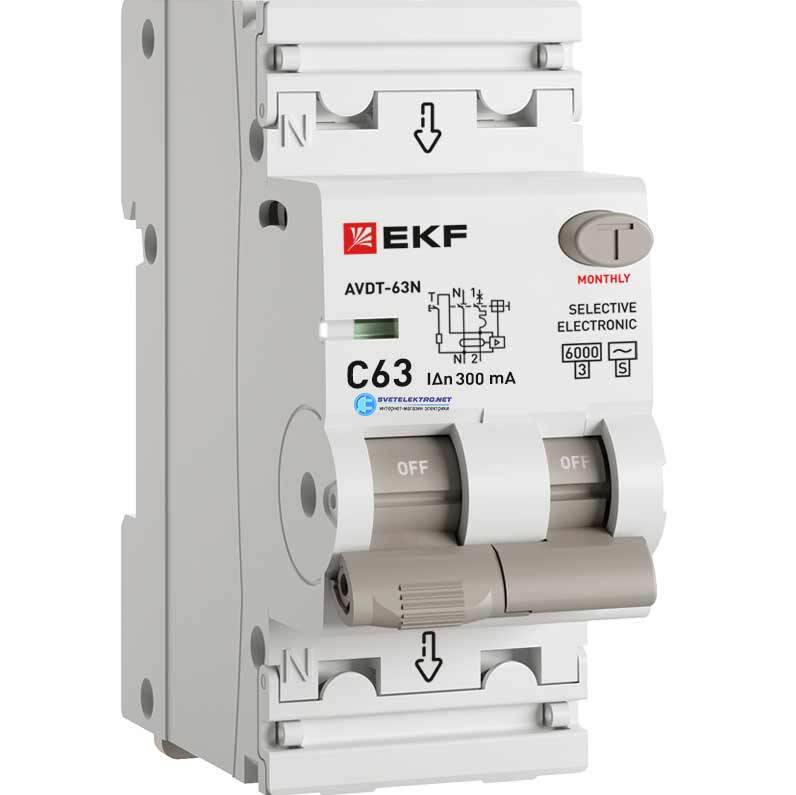 | Комплектация: | диф. автомат АВДТ-63N 1P+N 63А (C) 300мА (AC-S) эл 6кА PROXIMA EKF, |